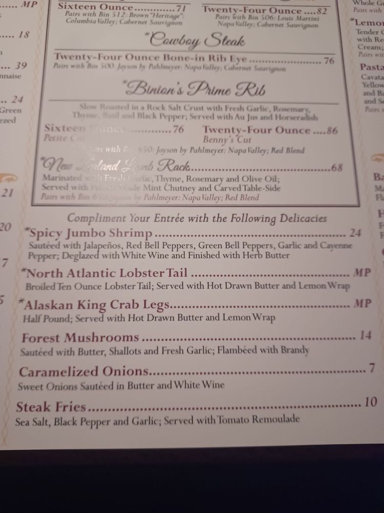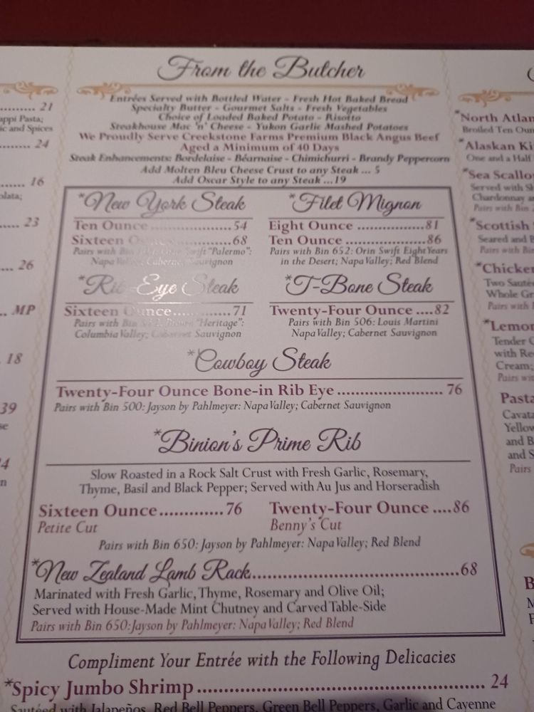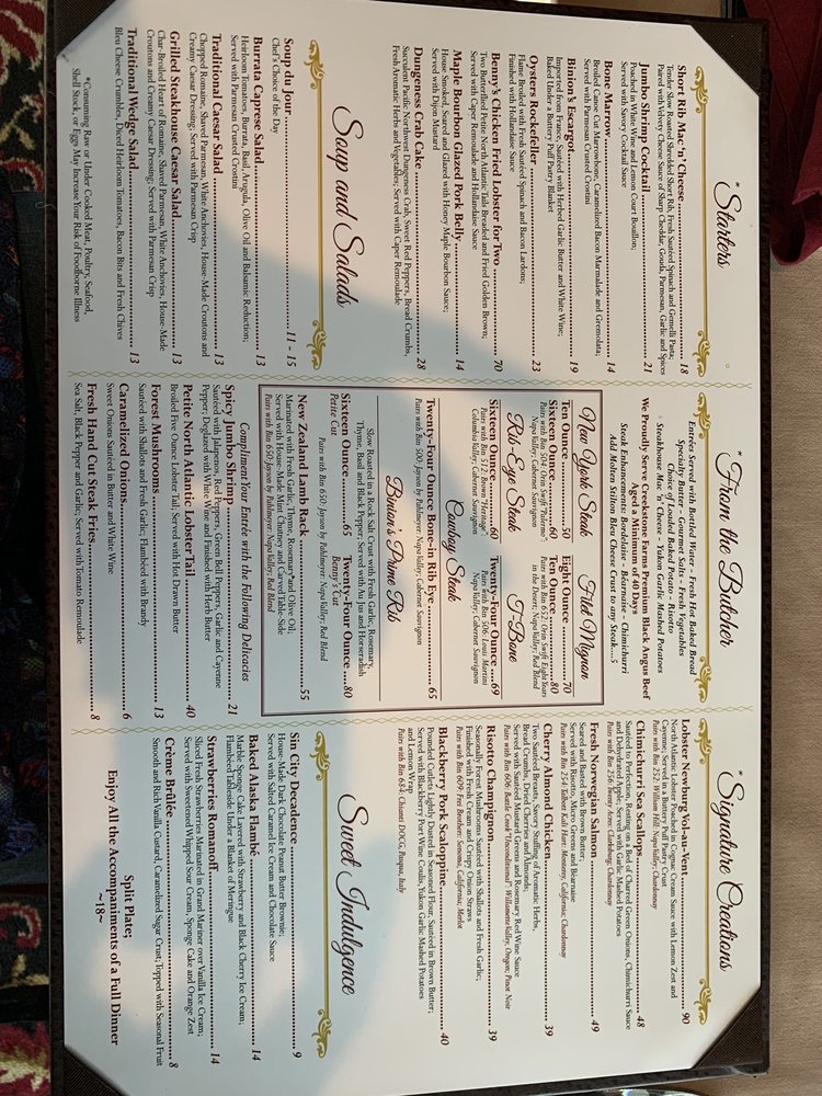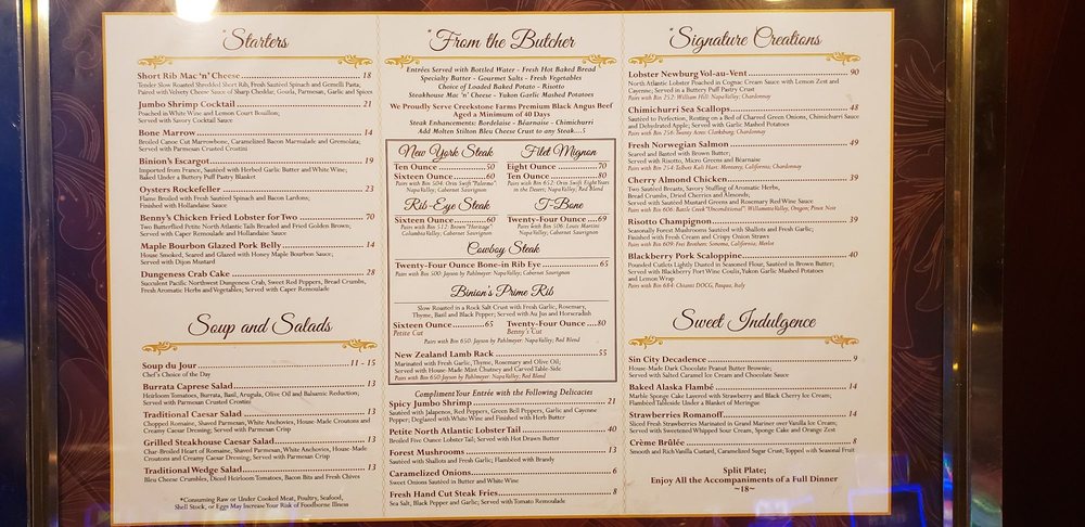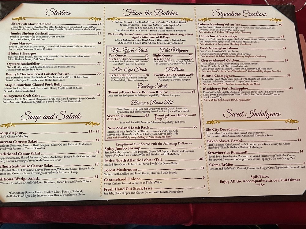 Top Of Binion's Steakhouse Menu (Update 2025)